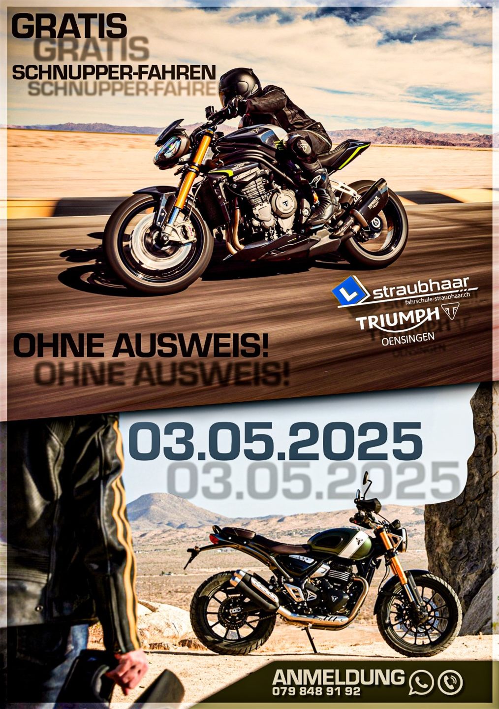Die Fahrschule Straubhaar und Triumph Oensingen freuen sich - Euch am 3. Mai 2025 zum
